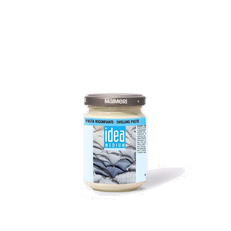 Pasta trasparente che miscelata ai colori per stoffa ne aumenta il volume. Aggiungere al colore un terzo di Pasta rigonfiante. Dipingere e lasciare asciugare all'aria per 24 ore. Stirare il retro del tessuto dipinto con ferro da stiro sulla temperatura più indicata per il tessuto. Si usa con i colori per stoffa Idea.