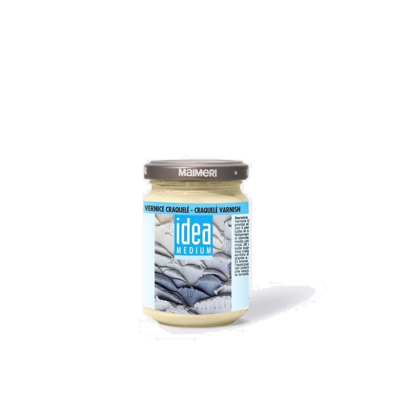 Vernice a base d'acqua pronta all'uso. Si stende sul fondo in modo uniforme. Dopo circa 30 minuti si applica sulla superficie della vernice craquelé un colore acrilico di tonalità contrastante a quella del fondo. In breve tempo durante l'essiccazione si formano nel colore le screpolature che lasciano intravvedere la tonalità del fondo.